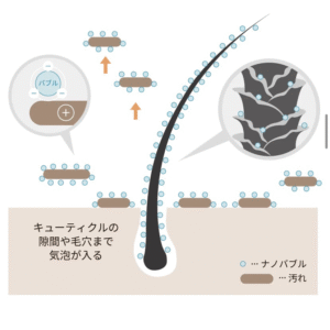 細かい泡(マイクロバブル)で、髪や頭皮の汚れをやさしく洗い流す機械なんです。