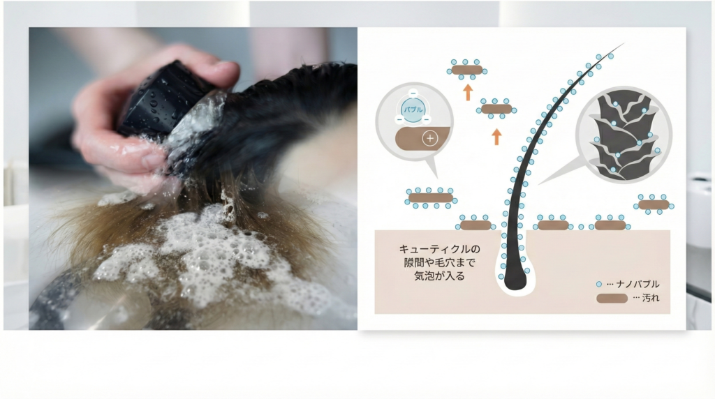 この超微細な泡が、普段のシャンプーでは届きにくい隙間の汚れにアプローチし、浮かせるように洗い流すことが期待できます✨
